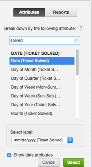 - Select # Solved Tickets from the Select Metric/Attribute drop-down list.