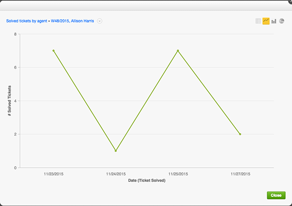 Keep in mind this is only one way to display # Solved Tickets. There are many different options to analyze daily productivity.