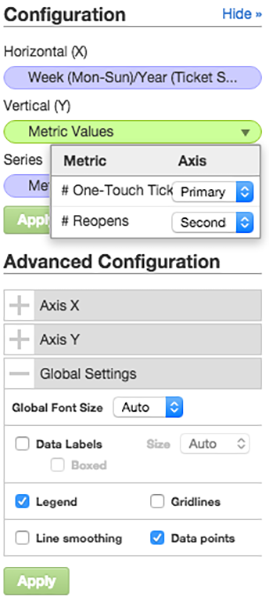 After you finish creating your report, you can configure chart options to reflect the number of one-touch tickets.