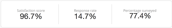 - Satisfaction score is the percentage of satisfied survey responses over the selected time period.
