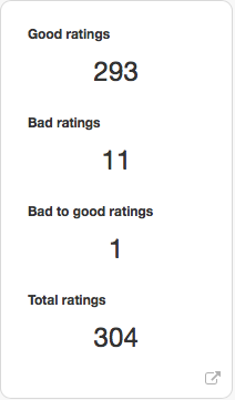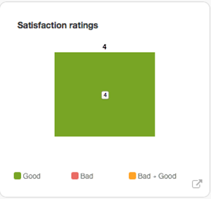 The satisfaction ratings ticker displays the overall number of survey responses in each rating for the selected time period. You can view individual tickets by clicking the rating number.