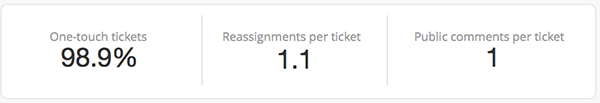 One-touch tickets is the proportion of tickets resolved in a single touch.