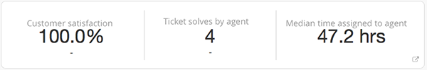 Note: If an agent creates a ticket on behalf of a user, it does not count as a first reply. The first reply is the first public comment by an agent in a ticket. - Customer satisfaction displays the overall satisfaction score for all tickets that received a satisfaction rating in the last 30 days.