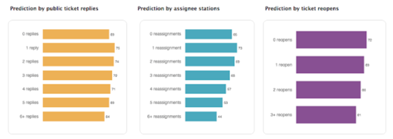 The prediction impact by action event graphs display predictions against key action-based metrics such as replies, re-assignments and re-opens to discovery any trends.