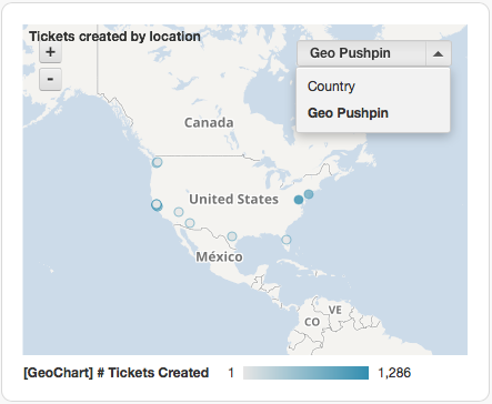 You can also use the Geo Pushpin feature to access precise information about the city and state the ticket was created in.
