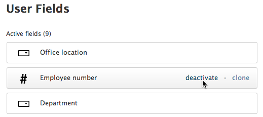 fields. - In the User Fields admin page, hover over the custom user field you want to