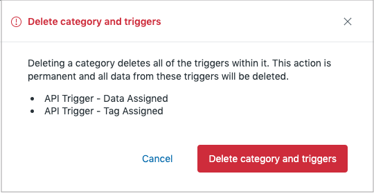 Delete.A list of all the triggers that will be deleted with the category appears.