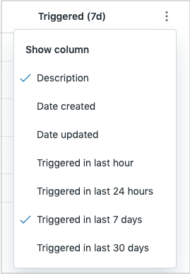 - Triggered (last 1 hour, last 24 hours, last 7 days, or last 30 days).